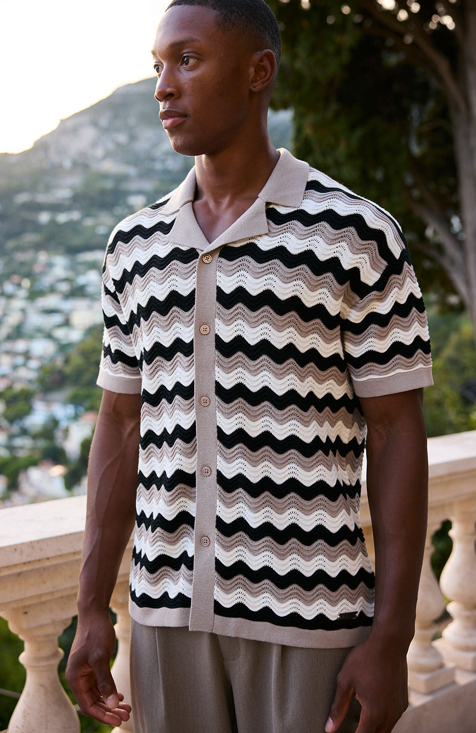 Aruba Textured Relaxed Fit Knitted Shirt in Taupe