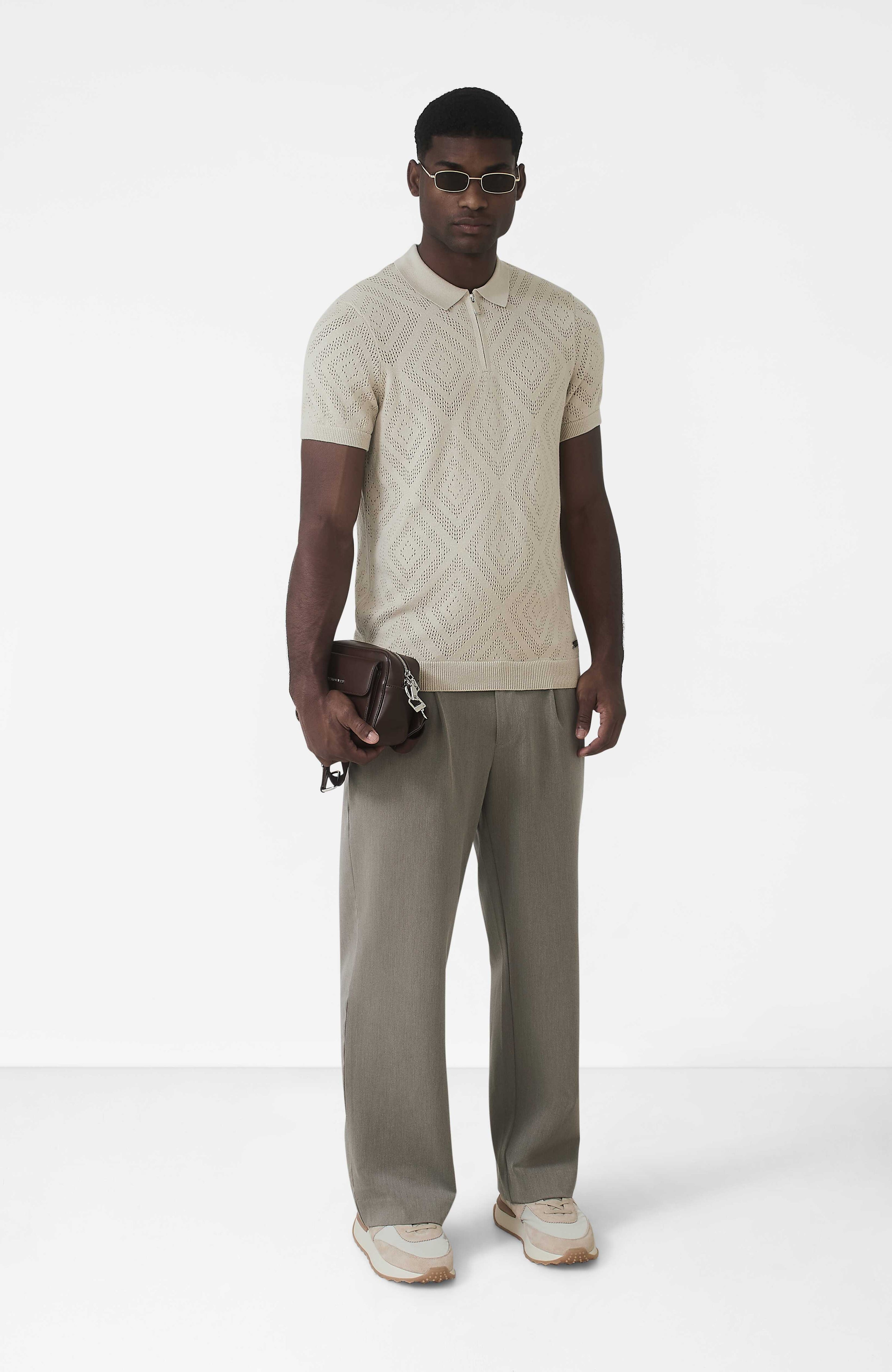 Chalbi Slim Fit Knit Pointelle Zip Polo in Beige